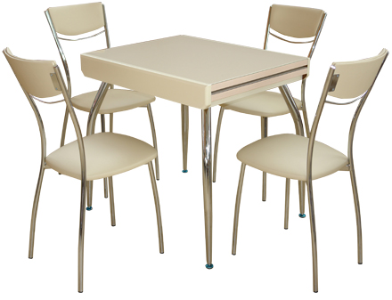 Галерея столов и стульев / Каталог / Столы / Раздвижной стол «Альфа СТ» для небольшой кухни, стул «Омега-4»