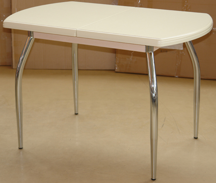 Стол «Толедо ПО» раздвижнойЦена модели на фото 11 190 руб.Габариты столешницы, мм: 700×1100(+370), полуовал.Материал: МДФ, хром.