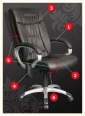 «Chicago» отличается повышенной комфортностью, что позволяет их использовать не только в качестве рабочих кресел для офисного кабинета, но также для оснащения домашних зон отдыха. Отличительные особенности модели: 1. Подлокотники обеспечивают рукам удобное положение и способствуют уменьшению усталости в области плеч и шейных позвонков. 2. Подколенник в передней части сидения устраняет избыточное давление в области подколенных суставов, что способствует улучшению кровообращения ног. 3. Подголовник оптимальным образом перераспределяет нагрузку на шейные позвонки пользователя. 4. Удобный чехол для пульта позволит за несколько секунд превратить массажное кресло в классическое офисное и погрузиться в активный рабочий процесс. 5. Специальный синхромеханизм изменяет угол наклона сиденья синхронно с изменением угла наклона спинки под действием веса пользователя в наиболее оптимальной эргономической пропорции. 6. Возможность настройки механизма качания в зависимости от веса пользователя при помощи регулирующего винта.