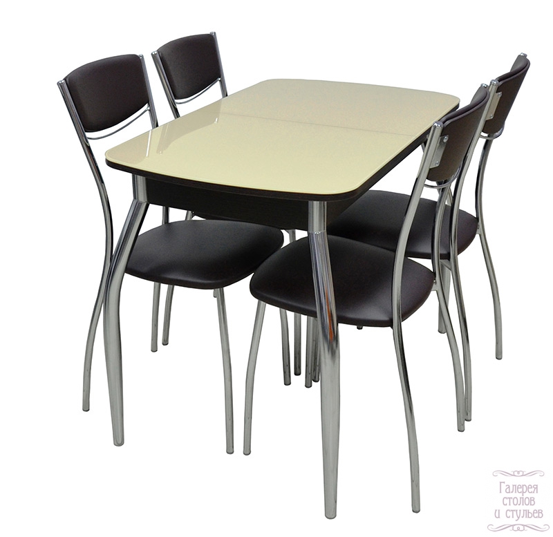 Современный и недорогой комплект из обеденного стола Верона 3 и стульев Олива 4.