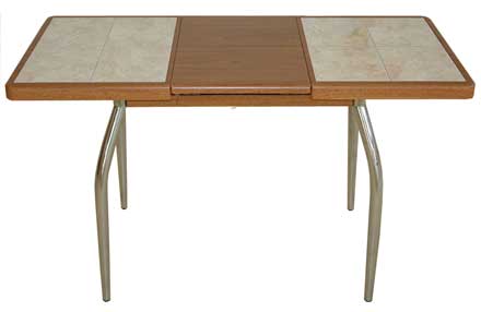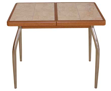 Стол «Шарди М»Цена 12 470 руб.Размер столешницы, мм: 550×880(1250).Материал: пленка PVC, керамическая плитка, хром.Цвета столешницы: бук, вишня, орех, махагон, венге, серый.Цвет на фото: орех.4 варианта плитки. Плитка на фото: 98.Стул «Омега 4»Цена 2 710 руб.Материал: хром, на сиденье — кож. зам. или ткань (цвет на выбор).Варианты спинки: мягкий (кож. зам.), твердый (МДФ + пленка PVC).Обивка сиденья на фото: ткань.Спинка на фото: МДФ, пленка PVC, цвет: орех.