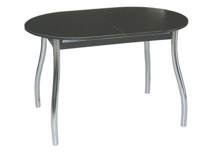 Столы этой серии имеют компактный размер, подходящий для малогабаритных помещений. Стол раскладывается за счет вставки с механизмом «бабочка» (хранится внутри стола), что позволяет приобрести при желании пару посадочных мест. Подстолье хромированное.
