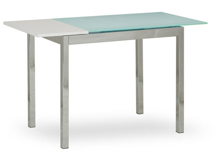 Стол «Aliva CR W» Цена модели на фото 15 000 руб. Столы серии «Aliva» имеют удобный механизм раскладывания стола и элегантную вставку, надежно закрепленную под стеклянной столешницей в собранном виде. В разложенном состоянии вставка прочно закрепляется в раме стола, что придает столу жесткость. Материалы: хромированный металл, закаленное стекло. Размеры (ШхДхВ), мм: 600×900(1250)х740.